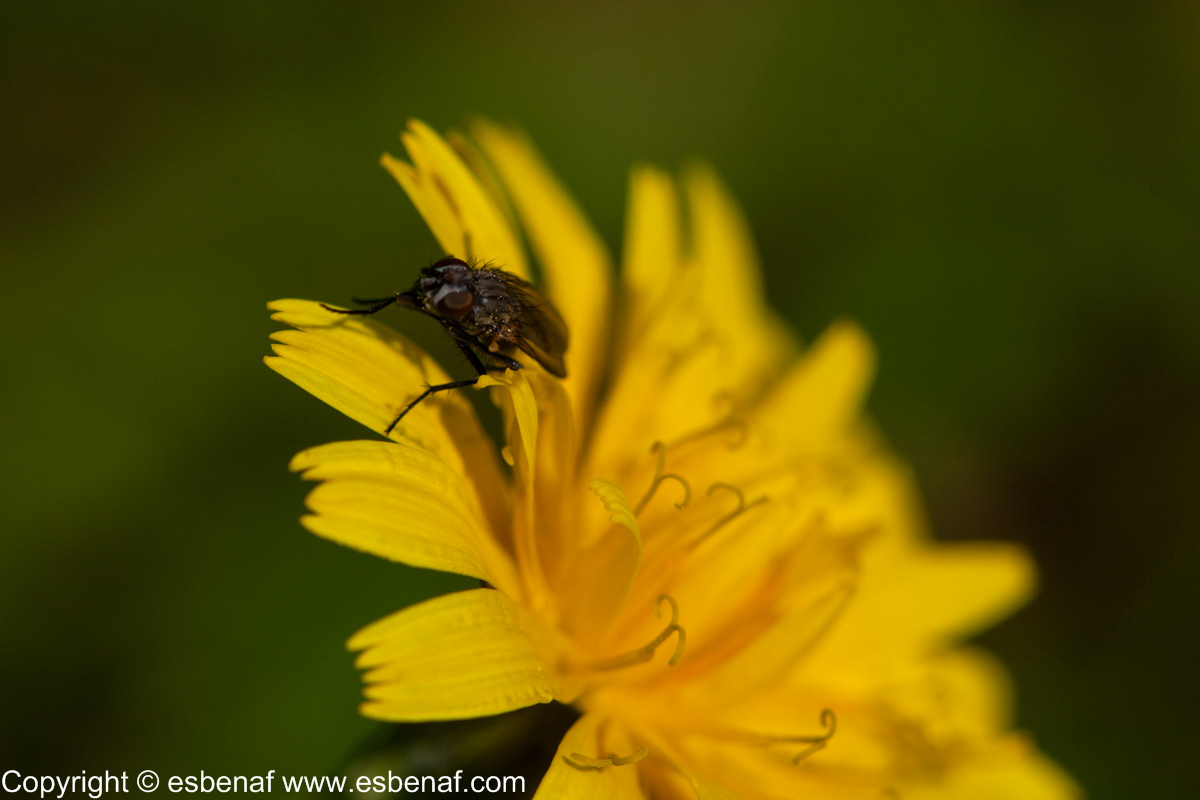 A fly is resting on a yellow flower.
