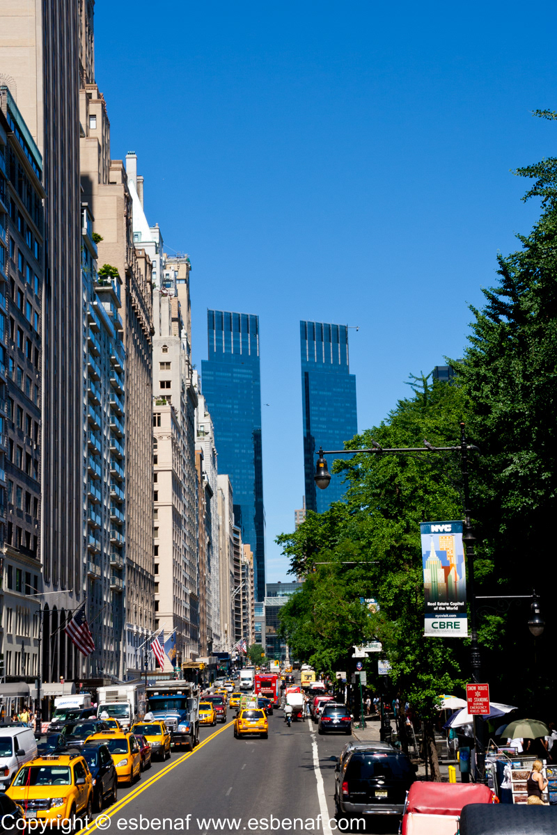 A panoramic view of the New York skyline and the Jacqueline Kennedy Onassis Reservoir.
